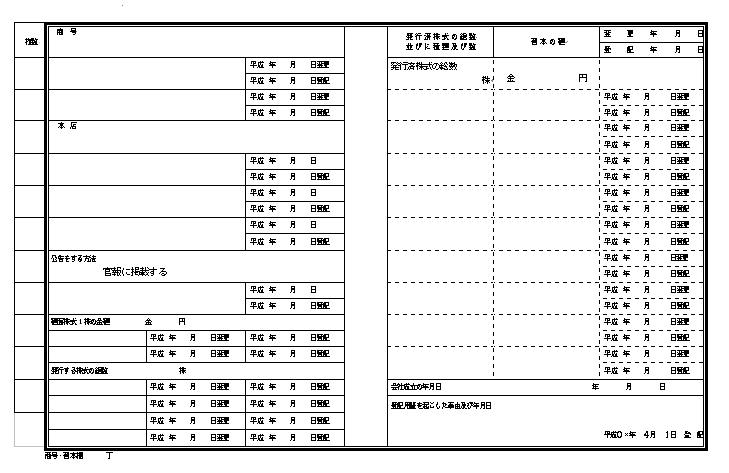 | 登記用紙と同一の用紙(株式欄) | 2001/06/15更新 | |||||