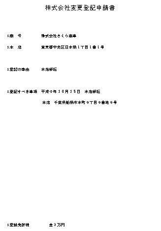 | 株式会社変更登記申請書(旧本店所在地の法務局へ巡回する登記申請書類) | 2001/06/15更新 | |||||