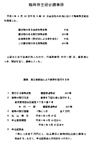 | 臨時株主総会議事録 | 2001/06/15更新 | |||||