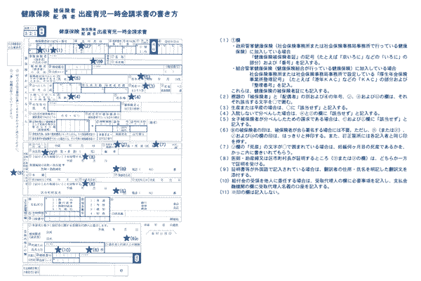 | 一児につき30万円 分娩日から2年以内まで請求可妊娠4ヶ月(85日)以上であれば、死産、流産等も該当のこと |
