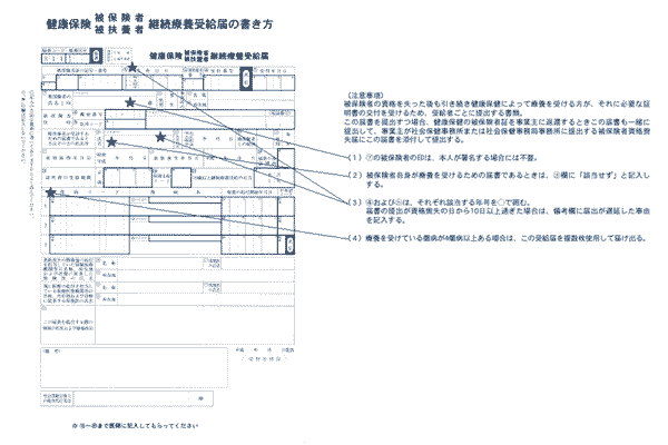 | 退職後継続して治療を受ける場合退職日より10日以内に提出 |