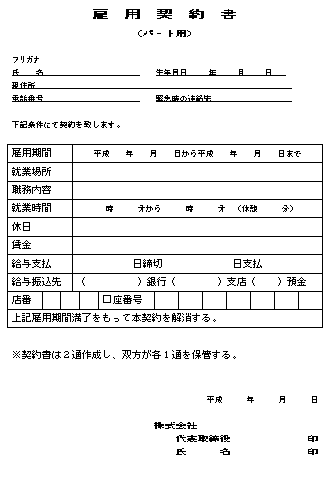 | 雇用契約書(パート用) | 2001/06/15更新 | |||||