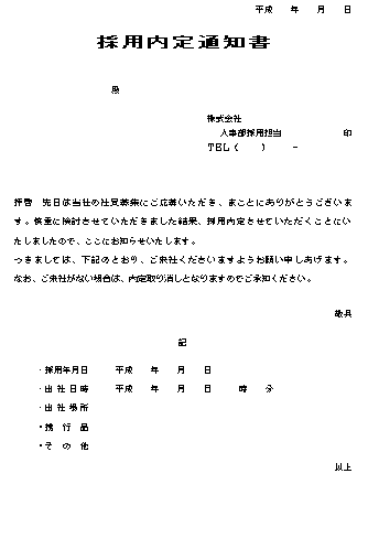 | 採用内定通知書 | 2001/06/15更新 | |||||