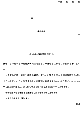 | 慎重に選考の結果、まことに残念ながら今回は採用を見送らせていただくことになりました。ご期待にお応えすることができず・・・ |
