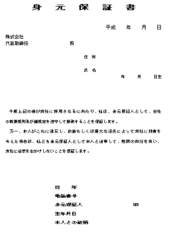 | 身元保証書 | 2001/06/15更新 | |||||
