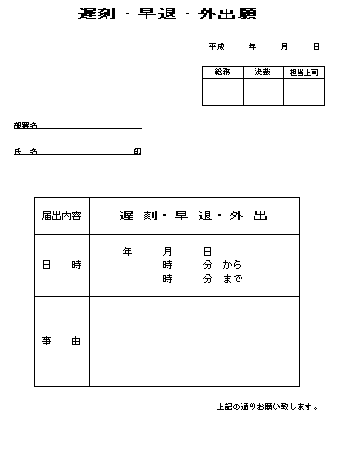 | 遅刻・早退・外出願 | 2001/06/15更新 | |||||