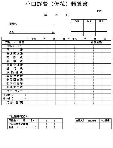| 小口経費(仮払)申請書 | 2001/06/15更新 | |||||
