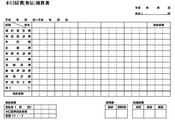 | 小口経費(仮払)申請書1 | 2001/06/15更新 | |||||