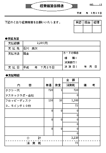 | 経費精算依頼書 | 2001/06/15更新 | |||||